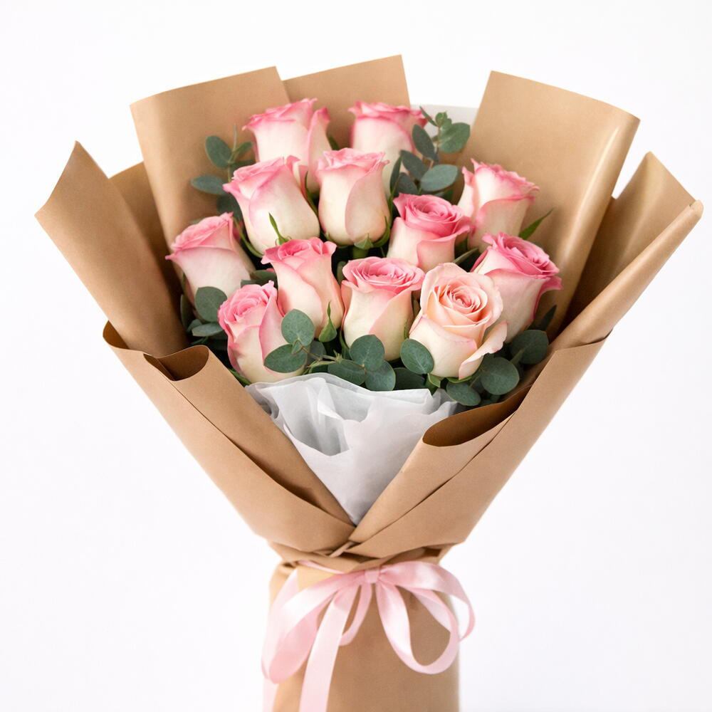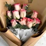 Eucalyptus - 2 pcs Pink rose - 11 pcs Wrapping - 1 pcs