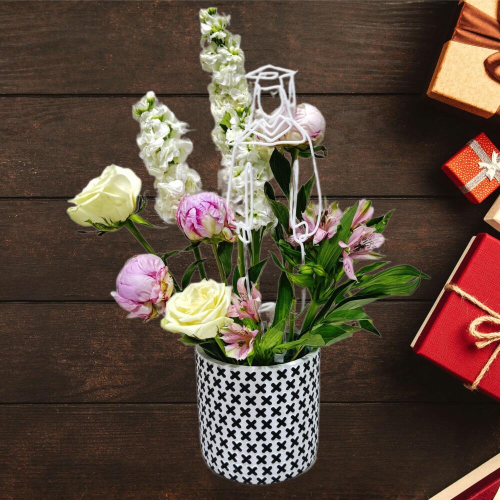 Alstroemeria - 2 pcs White rose - 2 pcs Peony pink - 3 pcs graduation stick - 1 pcs cermic vase - 1 pcs metholia - 2 pcs