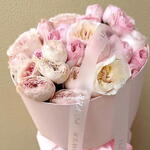 A soft and elegant bouquet featuring beautiful pink and cream garden roses. This arrangement evokes feelings of tenderness, admiration, and delicate joy. Its a perfect gift to say I love you, to celebrate a birthday, anniversary, or as a thoughtful gesture for a new baby or Mothers Day.