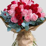 Red rose - 26 pcs Pink rose - 25 pcs eucalyptus filler - 4 pcs
