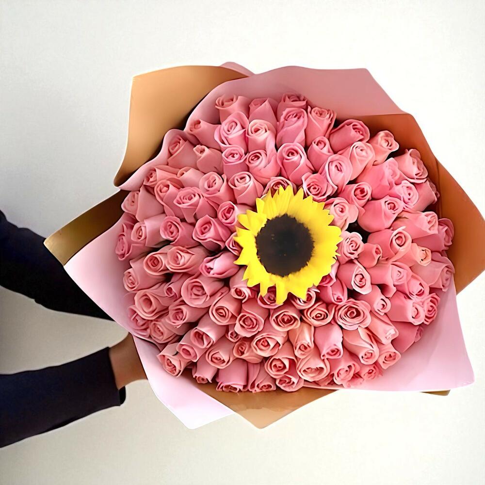 sunflower yellow - 1 pcs pink roses - 101 pcs