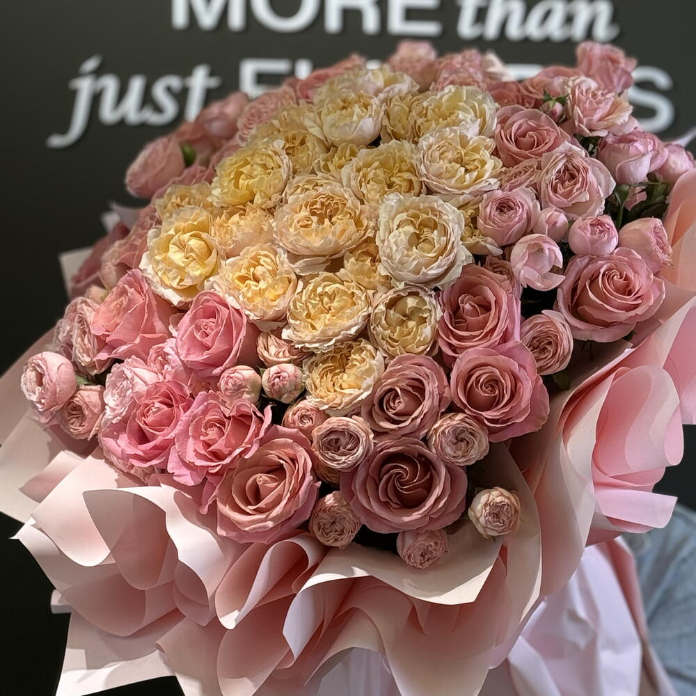 Spray rose - 15 pcs Wrapping - 10 pcs rose pink - 50 pcs juliette spary rose - 15 pcs