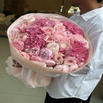 rose ohara pink - 12 pcs hydrangea light pink - 5 pcs peony sarah - 8 pcs ranunculus cherry pink. - 10 pcs
