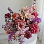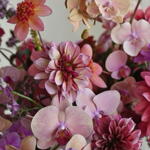 decorative greenery - 2 pcs dahlias - 5 pcs phalaenopsis orchids - 10 pcs seasonal filler flowers - 4 pcs spray orchids - 4 pcs