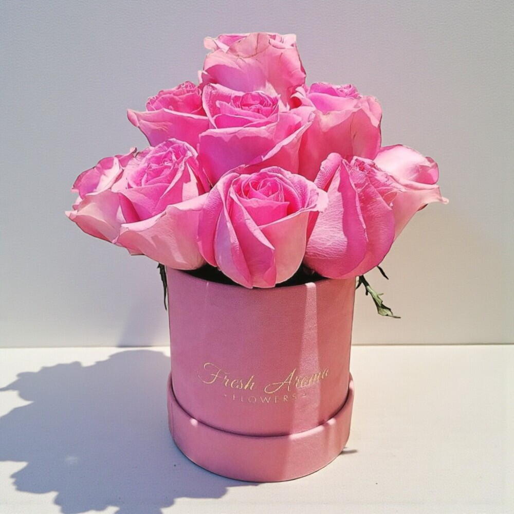 A charming and sophisticated arrangement of luxurious pink roses, beautifully presented in an elegant pink hatbox. This bouquet embodies grace, admiration, and appreciation, making it a perfect gift for birthdays, anniversaries, or to brighten someones day. The soft pink hue symbolizes sweetness and elegance, creating an unforgettable floral experience. Keep the arrangement in a cool and shaded area, away from direct sunlight and heat sources. Lightly mist the roses with water daily to maintain their freshness. If the box has floral foam inside, add a small amount of clean water every two days to keep the roses hydrated. Avoid placing near air conditioners or heaters to prevent drying.