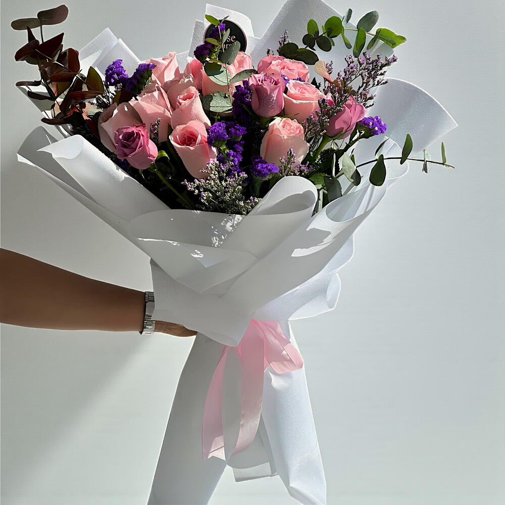 A vibrant blend of admiration and elegance. 18 fresh pink and purple roses arranged in a beautiful bouquet perfect for birthdays, celebrations, and heartfelt surprises. Handcrafted and delivered fresh across Dubai.