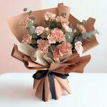 Wrapping - 1 pcs pink carnation - 8 pcs eucalyptus leaves - 3 pcs peach carnation - 7 pcs