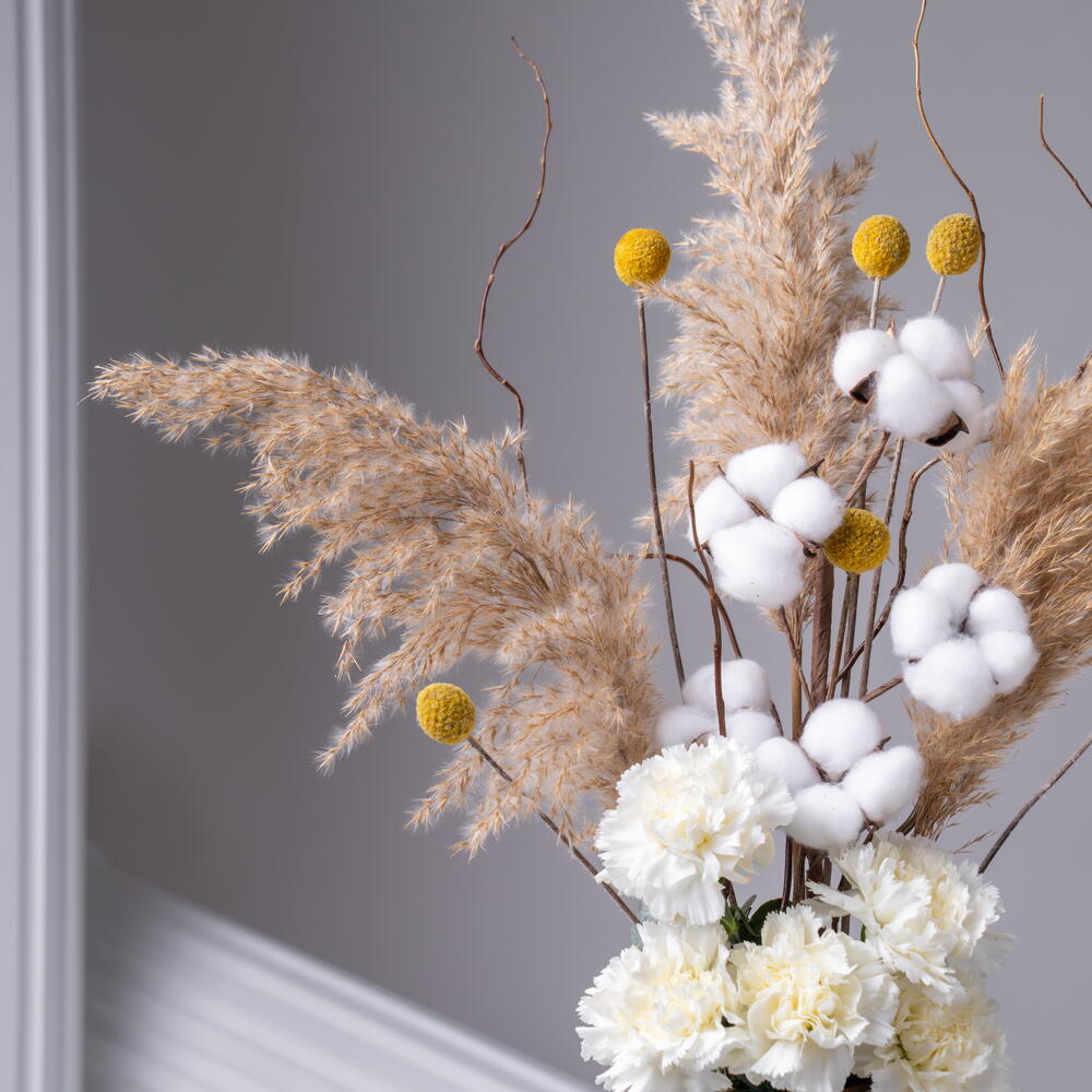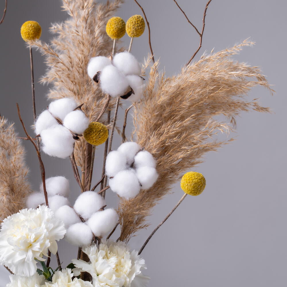 Cotton - 2 pcs carnation - 5 pcs craspedia - 5 pcs pampas - 3 pcs