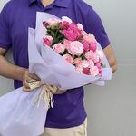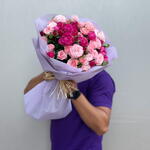 Ribbon - 1 pcs Wrapping - 4 pcs mixed color madam bombastic spray roses - 13 pcs