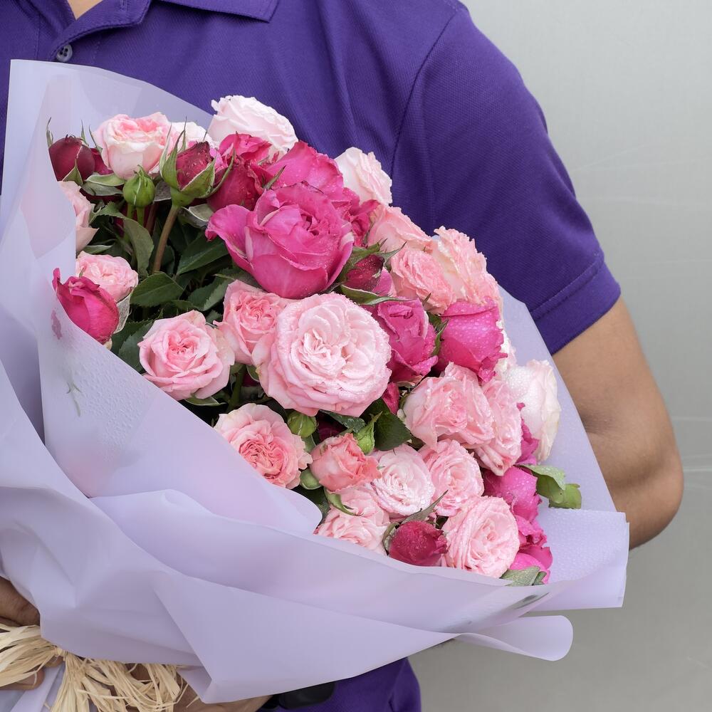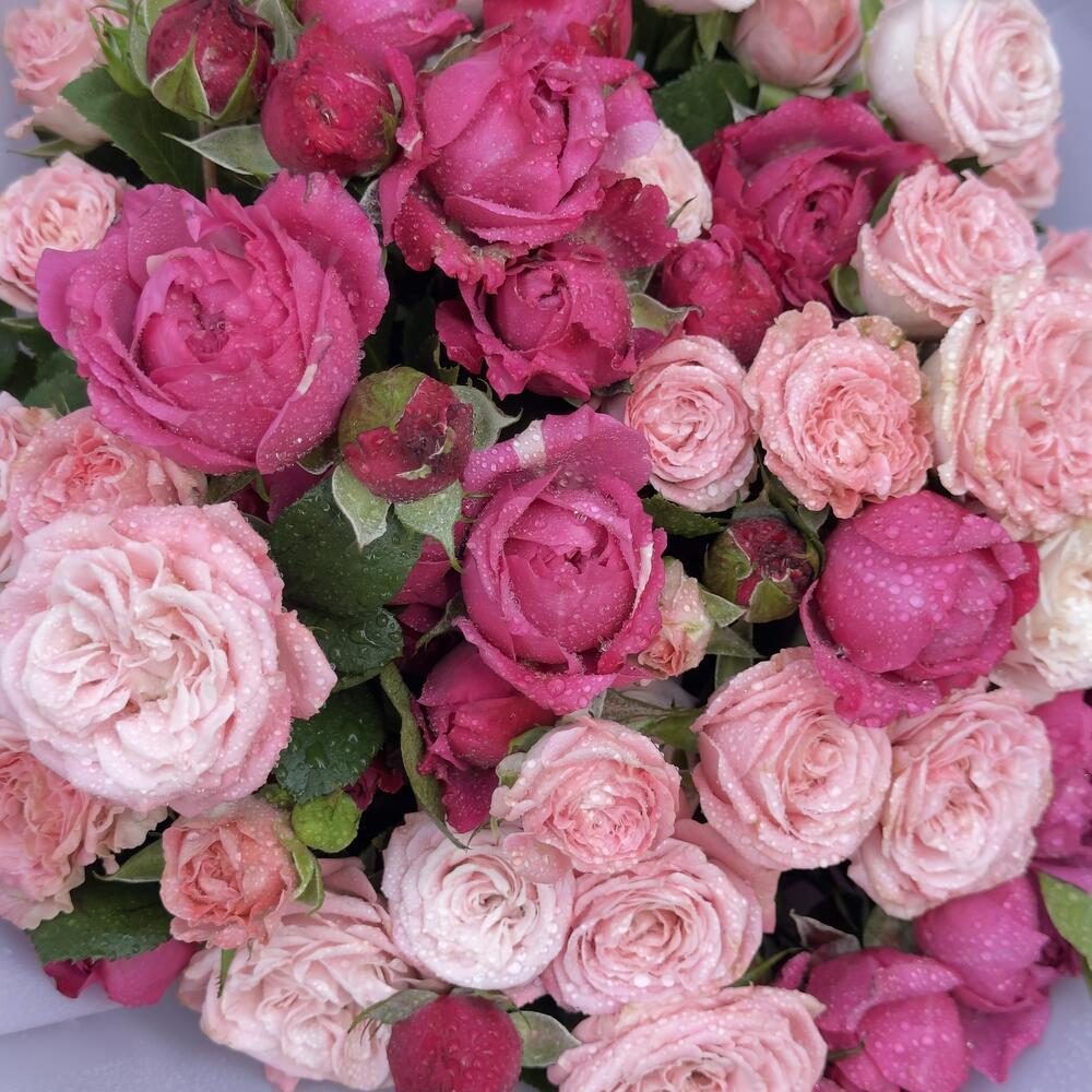 Ribbon - 1 pcs Wrapping - 4 pcs mixed color madam bombastic spray roses - 13 pcs