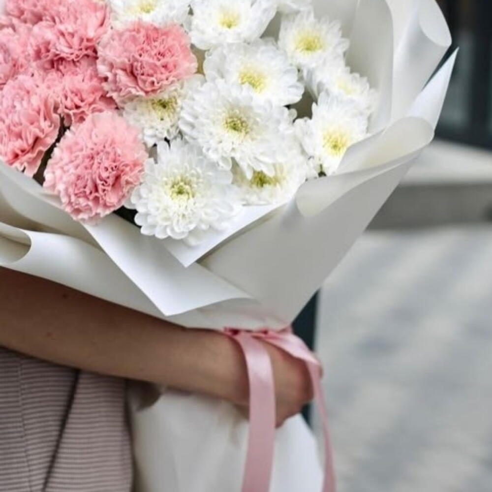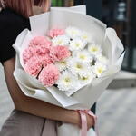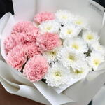 Chrysanthemum - 5 pcs dianthus - 8 pcs wrapping paper - 2 pcs krizal - 1 pcs instruction - 1 pcs rebbon - 1 pcs