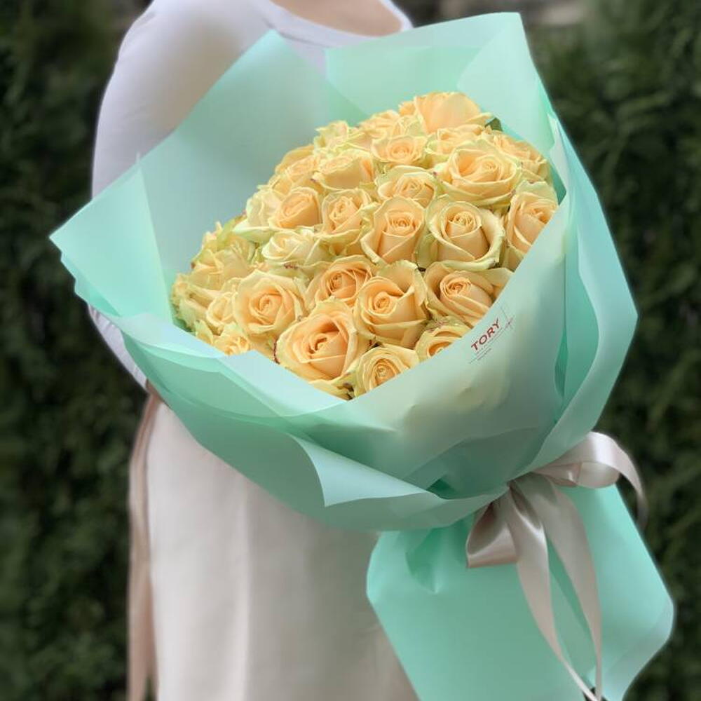Composition: Rose Peach - 51, wrapping - 1, ribbon - 1 Sizes: WIDTH - 50CM; HEIGHT - 65CM; LENGTH - 65CM; (including packaging) Size: 50 x 65 x 65 cm