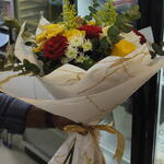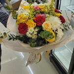 Beautiful mix flowers. Mix combination colorful Bouquet with white and gold color wrapping