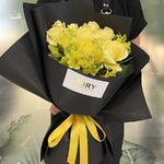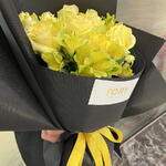 Composition: Alstroemeria - 6, Rose yellow - 9, Flower Wrapping Paper - 1 Sizes: WIDTH - 25CM; HEIGHT - 50CM; LENGTH - 50CM; (including packaging) Размер: 25 x 50 x 50 см