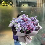 Composition: Hydrangea mix - 3, Mattiola spray - 5, Chrysanthemum - 4, Pittosporum - 3 Sizes: WIDTH - 60CM; HEIGHT - 55CM; LENGTH - 50CM; (including packaging) Size: 60 x 55 x 50 cm