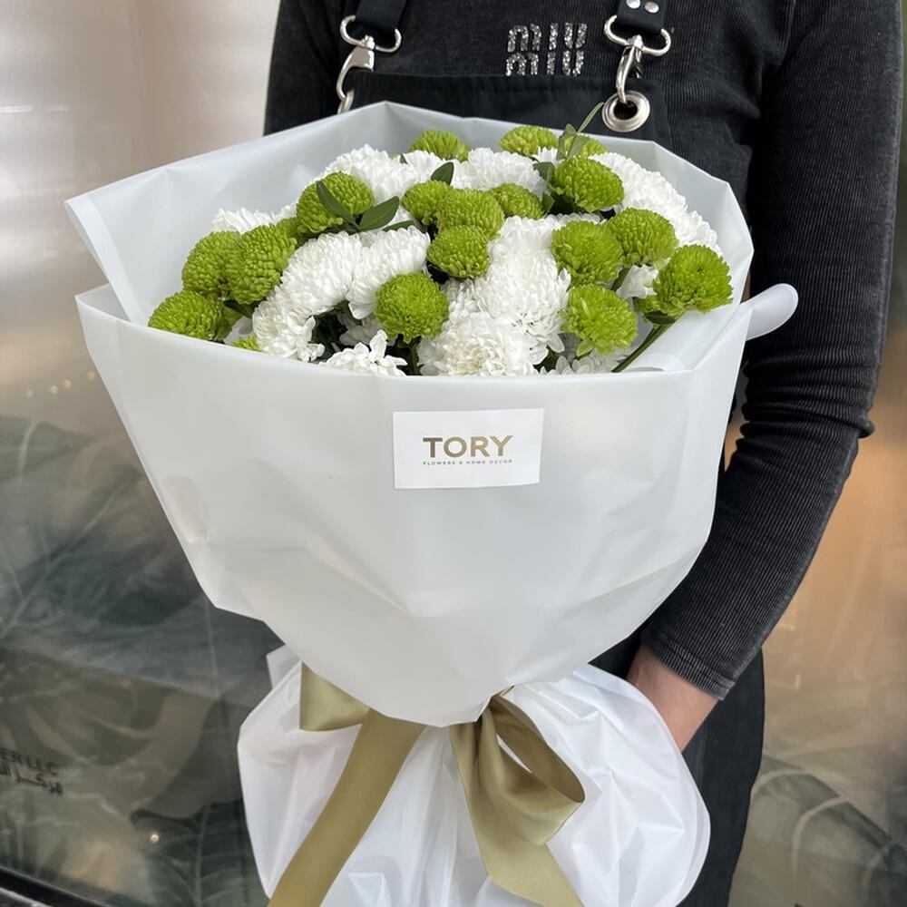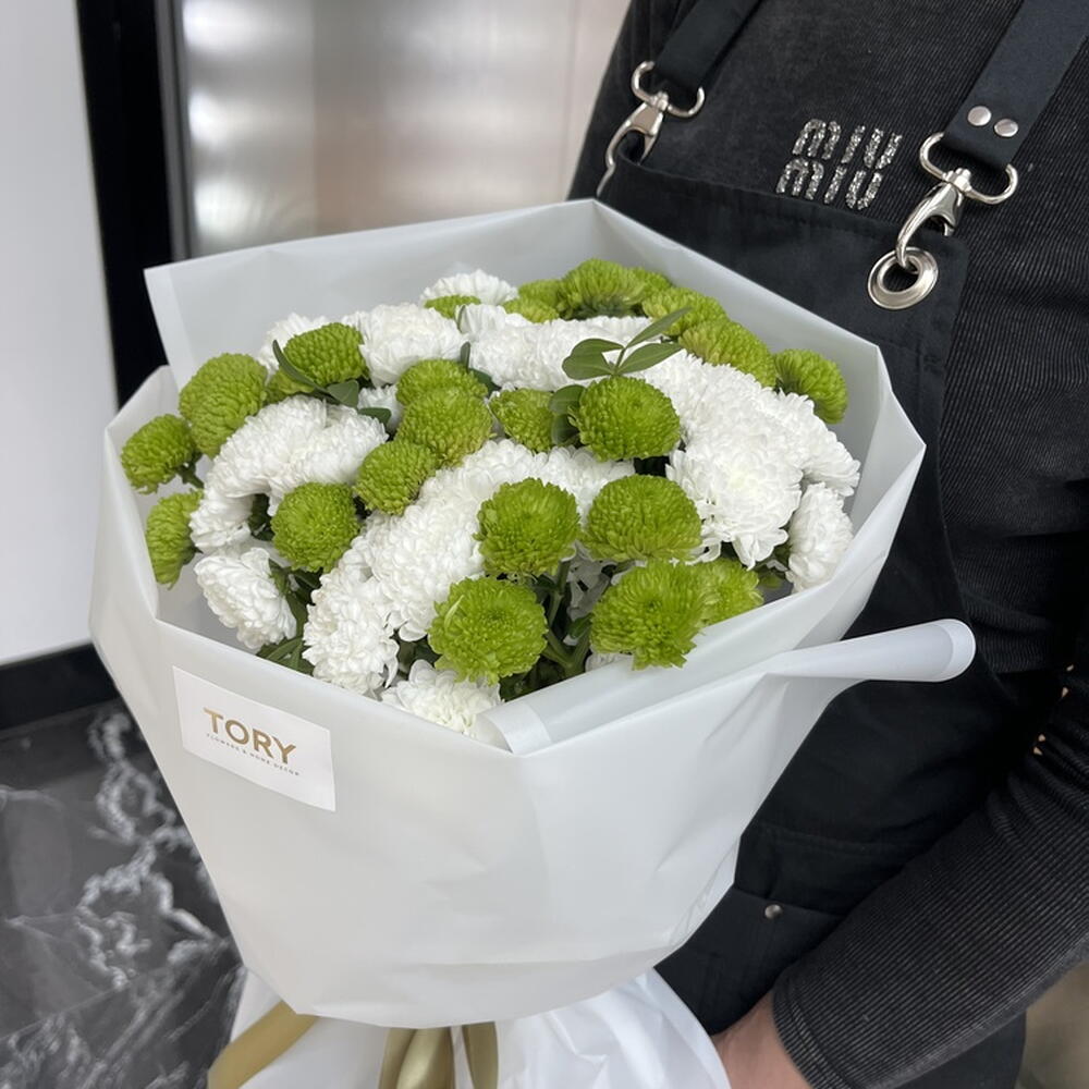 Composition: Chrysanthemum Santini - 15, Pistacia - 2 Sizes: WIDTH - 30CM; HEIGHT - 50CM; LENGTH - 50CM; (including packaging) Size: 30 x 50 x 50 cm
