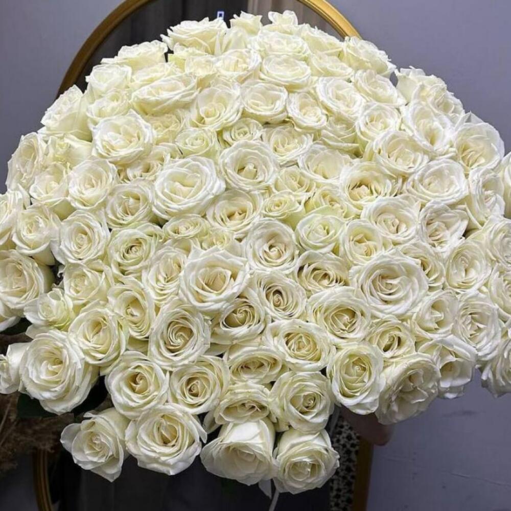 Bouquet of 101 white roses bloom