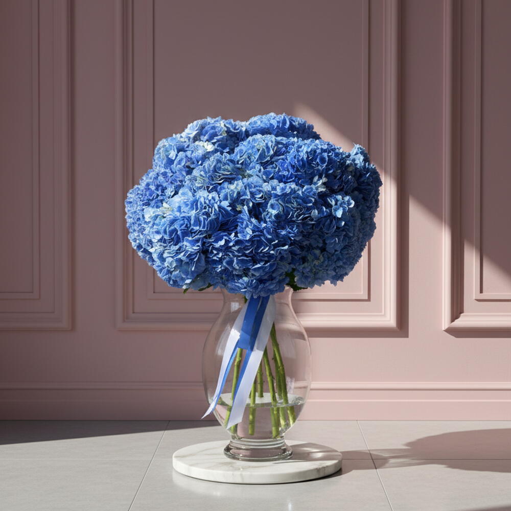 Bouquet of 15 blue hydrangeas