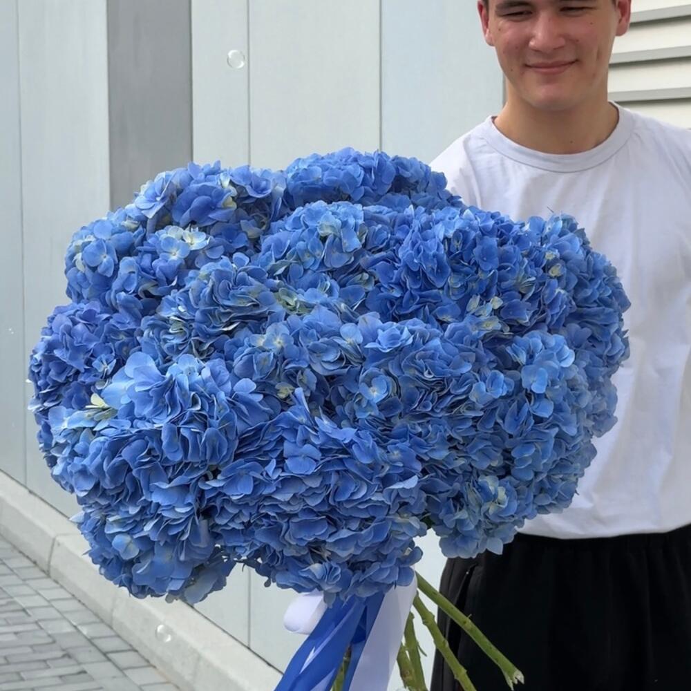 Composition: Hydrangea - 15, ribbon - 1 Sizes: WIDTH - 60CM; HEIGHT - 60CM; LENGTH - 60CM; (including packaging) Size: 60 x 60 x 60 cm