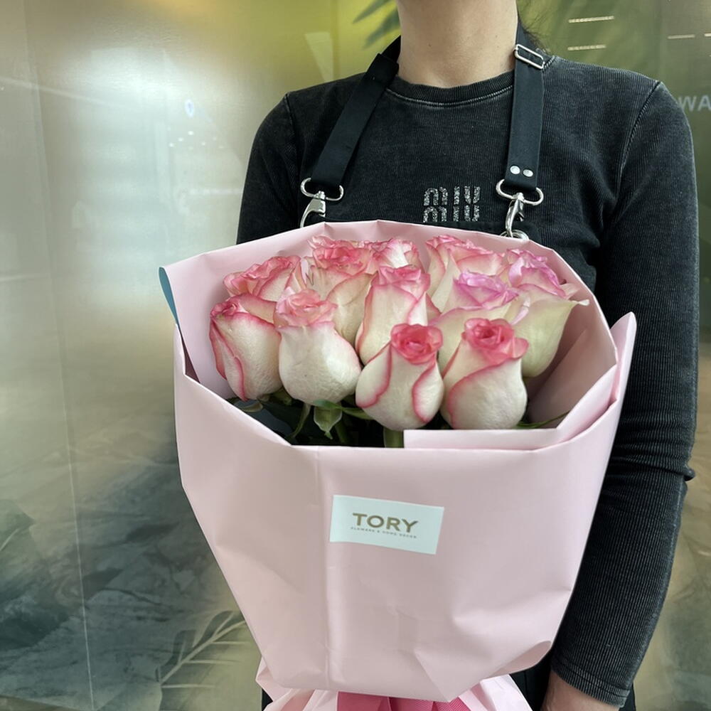 Composition: Jumilia rose - 15, wrapping - 1, ribbon - 1 Sizes: WIDTH - 30CM; HEIGHT - 60CM; LENGTH - 60CM; (including packaging) Size: 30 x 60 x 60 cm