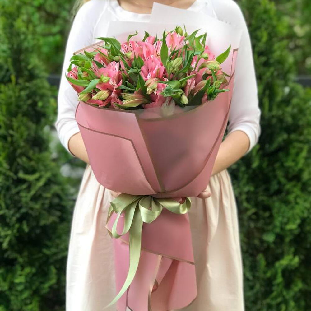 Composition: Alstroemeria - 15, Wrapped - 3, Ribbon - 2 Sizes: WIDTH - 26CM; HEIGHT - 45CM; LENGTH - 45CM; (including packaging) Size: 26 x 45 x 45 cm
