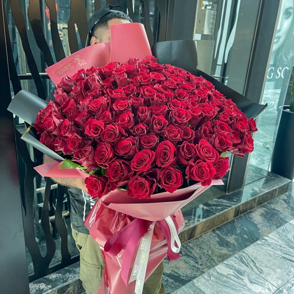 Composition: rose red - 225, Ribbon - 1, wrapping - 1 Sizes: WIDTH - 80CM; HEIGHT - 70CM; LENGTH - 70CM; (including packaging) Size: 80 x 70 x 70 cm