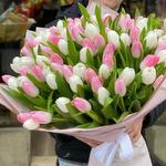 Bouquet of 51 pink and white tulips