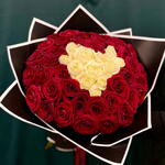 Ribbon - 2 pcs wrapping paper - 2 pcs card - 1 pcs krizal - 1 pcs instruction - 1 pcs red roses - 40 pcs white roses - 11 pcs