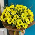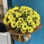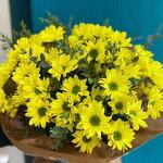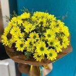Bouquet of 51 yellow chrysanthemums and eucalyptus