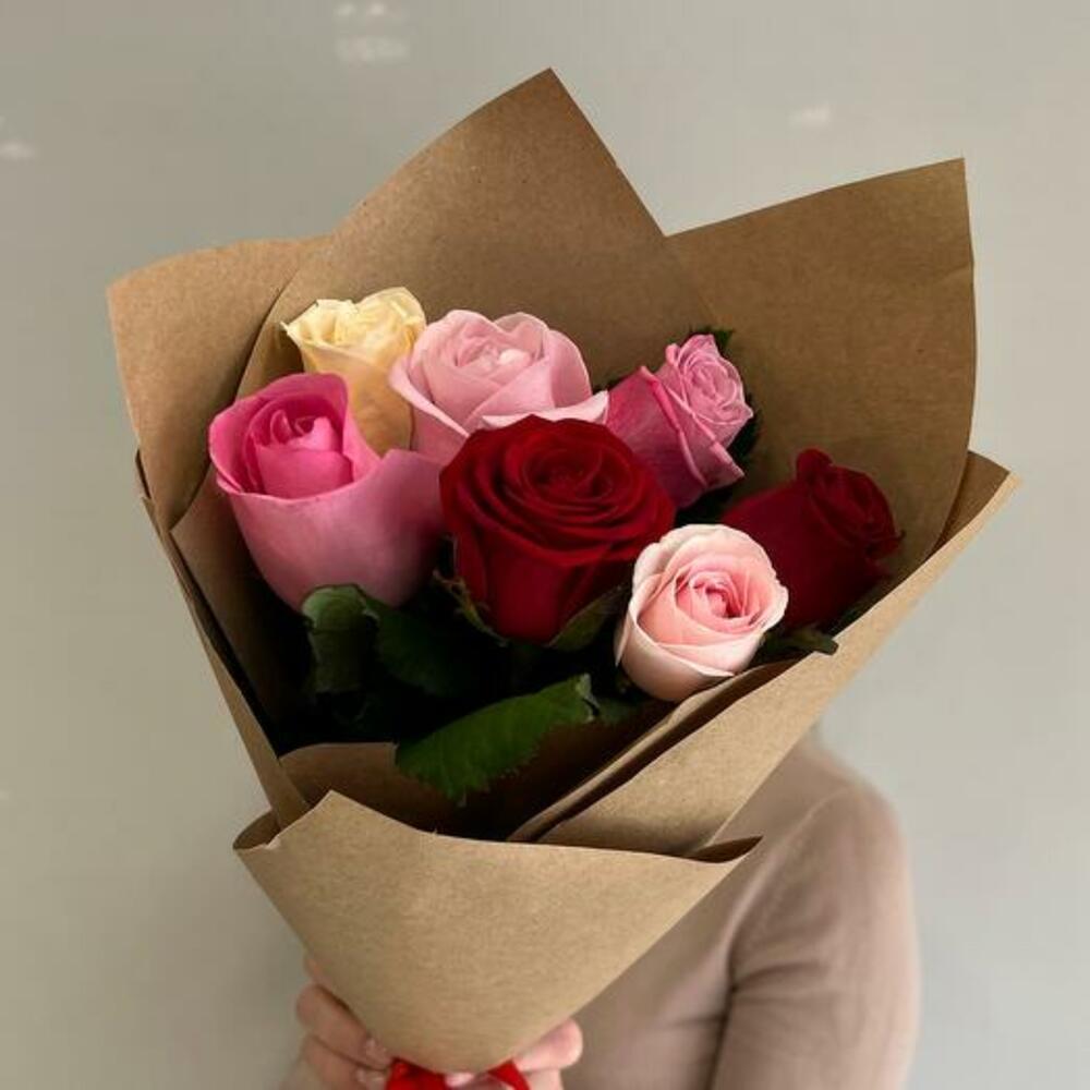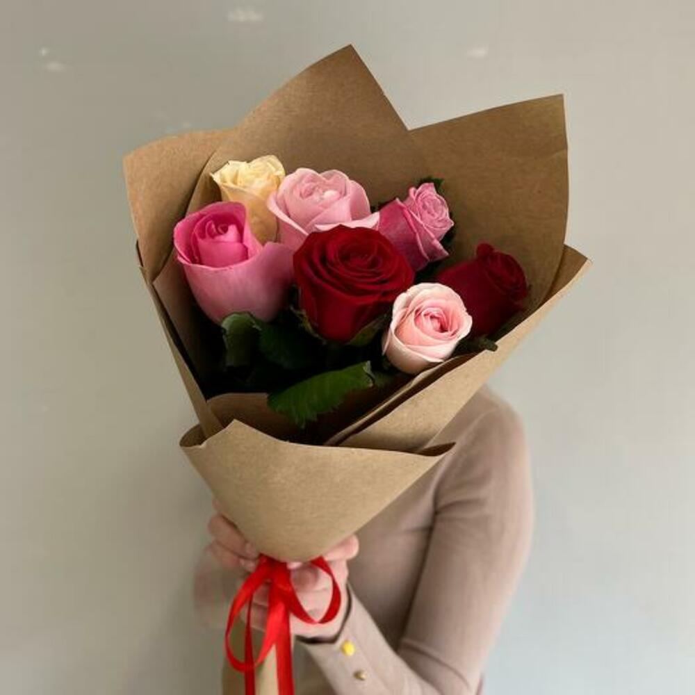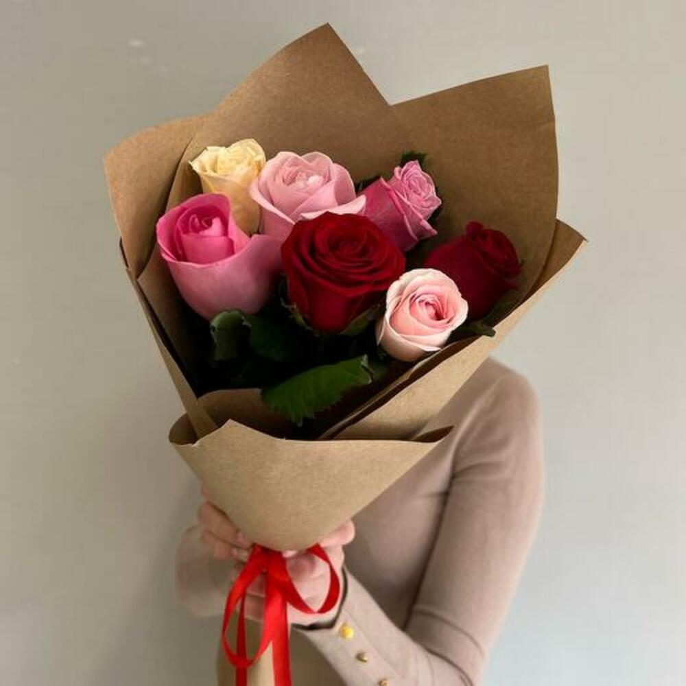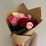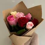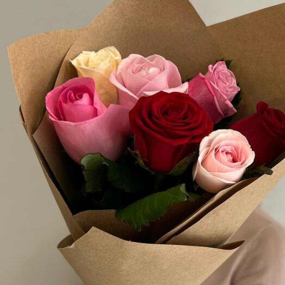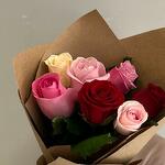 Bouquet of 7 multi-coloured roses in a pack -3826