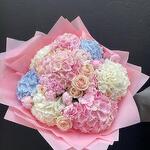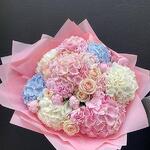 Bouquet of beige roses,pink peonies, assorted hydrangeas