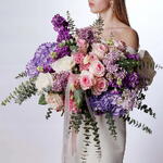 A lush and sophisticated bouquet featuring Matthiolas, Roses, Hydrangeas, and Eustomas, accented with fragrant Eucalyptus and exotic Midnight Rose Syringa. This captivating, textural arrangement makes an elegant and memorable gift for any special occasion.