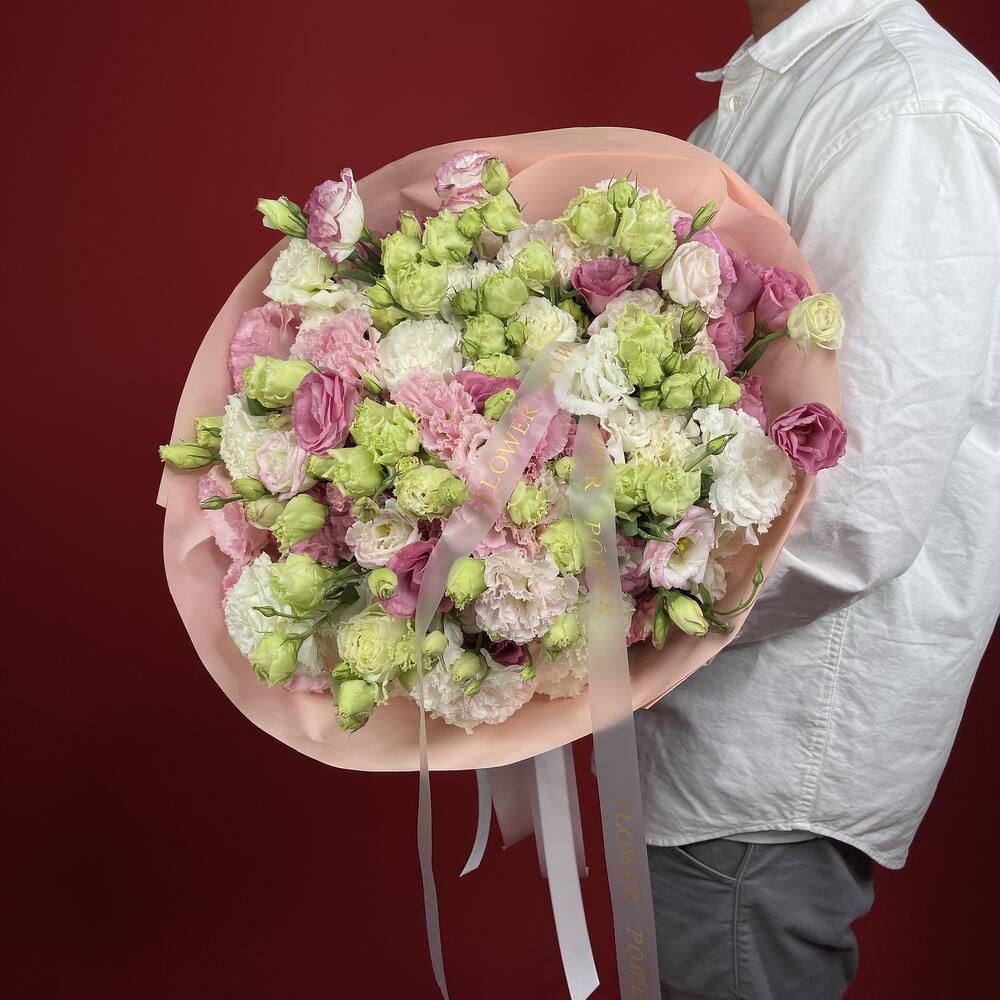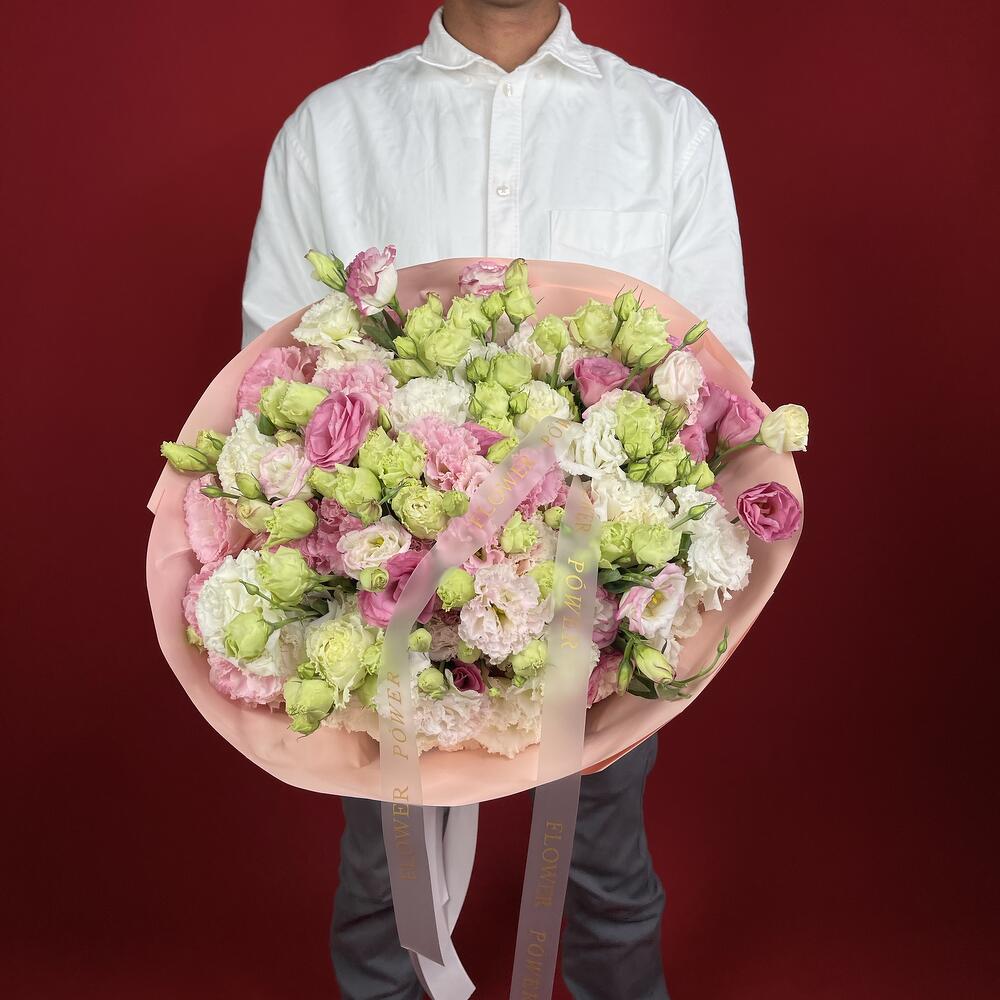 A delightful and enchanting Pastel Promenade awaits with this generous bouquet of mixed-color eustoma in gentle pink, green, and white hues. These delicate blooms perfectly express joy, admiration, and sincerity, creating a soft, dreamy ambiance. Its a wonderful choice for birthdays, saying Thank You, celebrating a new baby, or simply bringing a light touch of happiness to any ordinary day.