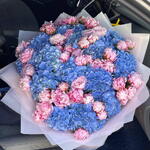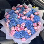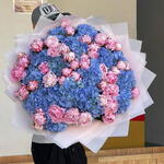 Ribbon - 2 pcs hydrangeas - 15 pcs pink peonies - 50 pcs wrapping paper - 2 pcs card - 1 pcs aquabox - 1 pcs krizal - 1 pcs instruction - 1 pcs