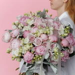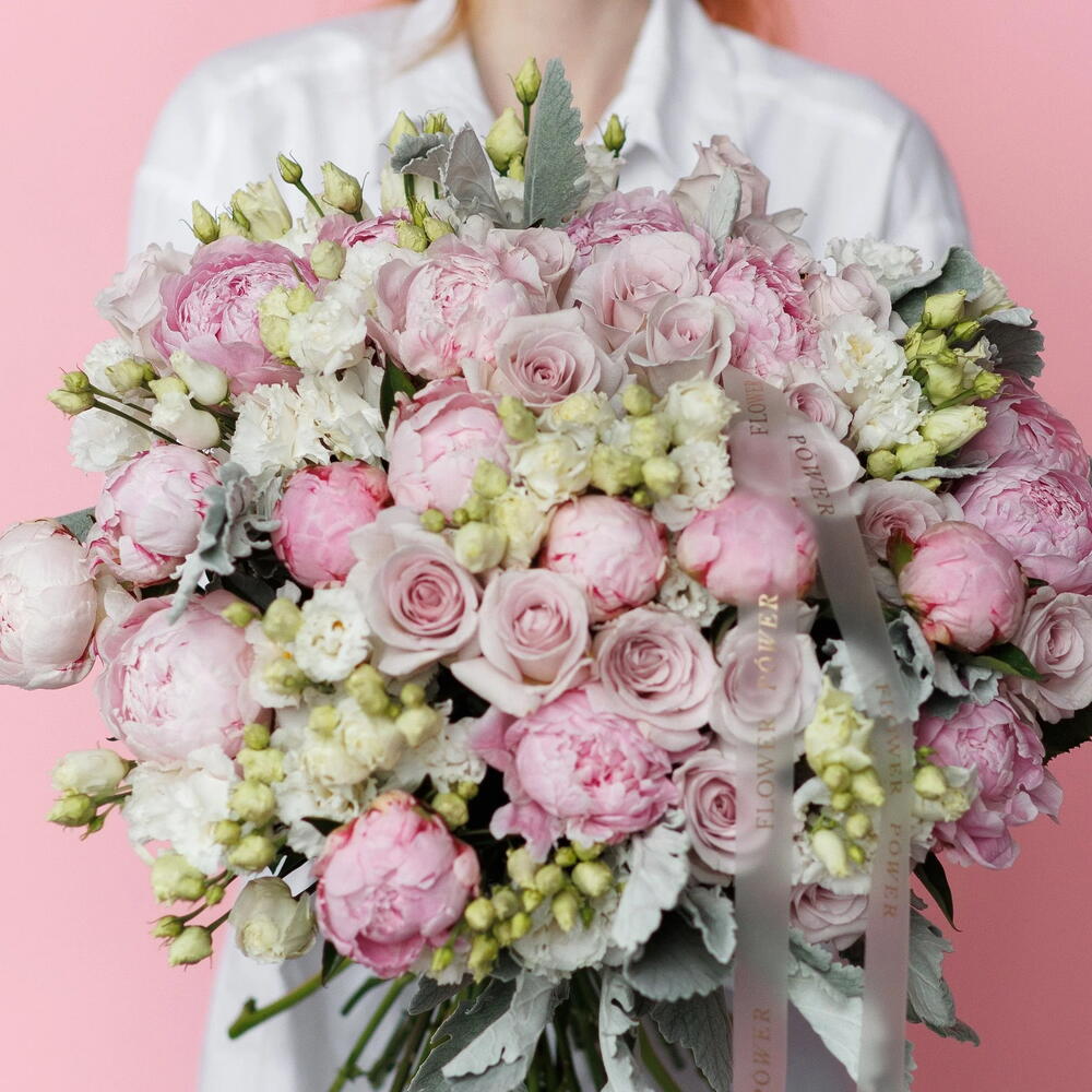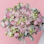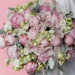 A truly elegant and airy composition featuring fresh peonies, roses, eustomas, and Senecio branches. Designed in delicate shades of light rose, white, and beige, the Celeste bouquet is the quintessence of tenderness and purity—a perfect, sophisticated gift for a soulmate, birthday, or wedding décor.
