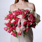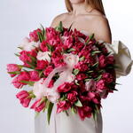Pink Obsession: Large Bouquet of 50 Pink Tulips and 05 Blush Pink Ranunculus