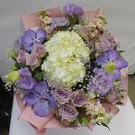 Hydrangea - 1 pcs Alstroemeria - 8 pcs Gypsophila - 3 pcs Lisianthus - 3 pcs packaging - 1 pcs matthiola - 3 pcs wanda - 3 pcs rose (kenya) - 10 pcs