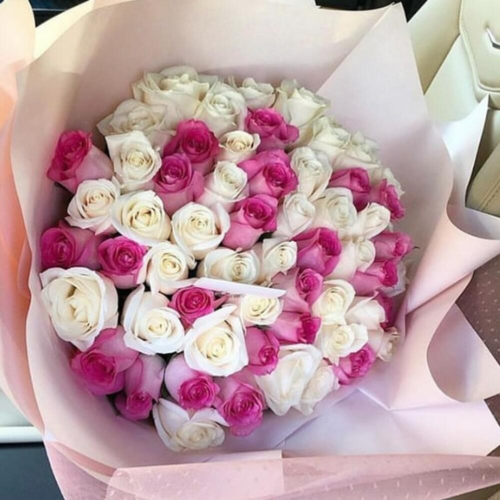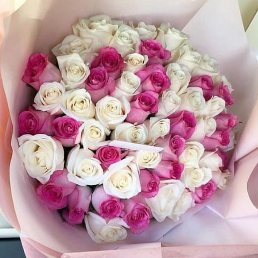Bouquet of white and pink roses