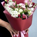 Composition: Mattiola - 4, Alstroemeria - 3, Lisianthus - 3, Spray Rose Snowy blossom - 2, Wrapping Paper - 1, RIBBON - 1 Sizes: WIDTH - 25CM; HEIGHT - 50CM; LENGTH - 50CM; (including packaging) Size: 25 x 50 x 50 cm