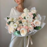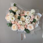 Presenting our Florists Special of an exquisite flower arrangement. Comprised of 10 pieces of delicate White Ohara roses, a sweet touch of 5 pieces of Madam Bombastic roses, accompanied by 5 pieces of ethereal White Lisianthus flowers. The beauty of these florals is further accentuated by the 3 pieces of refreshing eucalyptus leaves to give your space an irresistible, natural aroma. Each bouquet is delicately wrapped in 3 sheets of white tissue paper and sealed within 5 layers of transparent wrapping for the utmost elegance. Embrace this whimsical touch of nature at your place or deliver this floral fantasy right to your loved ones doorstep.
