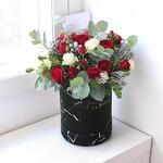 Celebrate elegance in a compact form with our Chic Red White Rose Flower Box. Designed in a stylish black marble-print box, this charming arrangement combines deep red roses and spray roses with delicate white spray roses, complemented by lush eucalyptus leaves and fresh greenery. Ideal for intimate celebrations, romantic gestures, or stylish décor accents, this bouquet delivers timeless beauty in a perfectly sized display. Care Instructions: Keep the arrangement in a cool, well-ventilated area away from direct sunlight, heaters, and fans. Lightly mist the blooms with water daily, focusing near the base of the stems while avoiding oversaturation. Avoid placing the box near ripening fruit or sources of strong fragrance. With minimal handling and proper care, this bouquet will retain its fresh appearance and charm for several days.