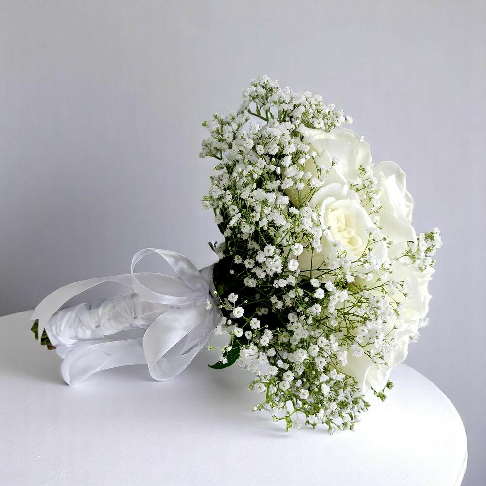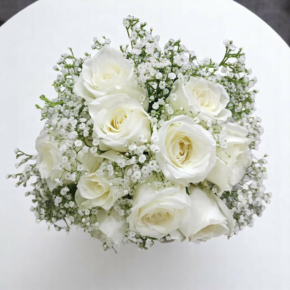 White rose - 10 pcs Gypsophila - 5 pcs