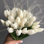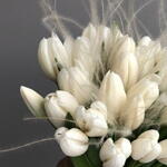tulips white - 25 pcs rebbon - 1 pcs stiffa - 10 pcs box with water - 1 pcs