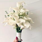 This exquisite wedding bouquet is meticulously crafted with a collection of 24 artificial calla lilies, exuding timeless elegance and an impressive semblance to the real flower. Complemented graciously with 3 pieces of Canvallaria, the arrangement spreads a radiant touch of delicacy that beautifully blends traditional inspiration and modern chic. A perfect companion for your grand day to bring blooming ambiance without the worry of wilting or allergies. Bring home this symbol of marital bliss thatll last a lifetime, just like your love.