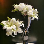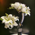 Bridal handle bouquet. White Lilly proud white roses