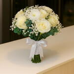 Eucalyptus - 5 pcs Chrysanthemum - 1 pcs White rose - 10 pcs gypsum - 3 pcs