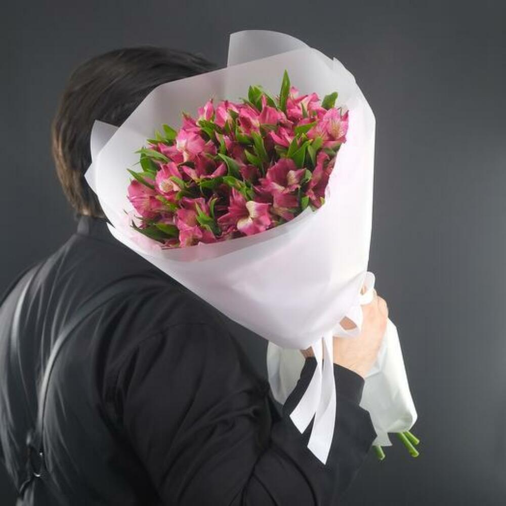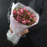 A bright bouquet of persistent pink alstroemeria. Perfect to make your loved ones day more enjoyable. Instructions: 1. If desired, carefully remove the packaging. 2. Cut the stems by 2cm to allow water to flow more easily to the buds and immediately place the bouquet in cold, clean water. 3. Flowers do not like temperature fluctuations, when choosing a place for the bouquet, try to avoid bright sun and draughts and do not put flowers near heating devices. 4. Change the water and renew the cuttings every day.