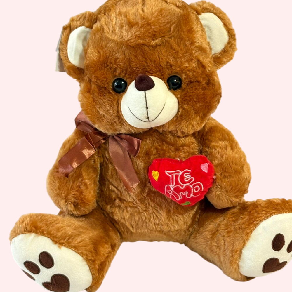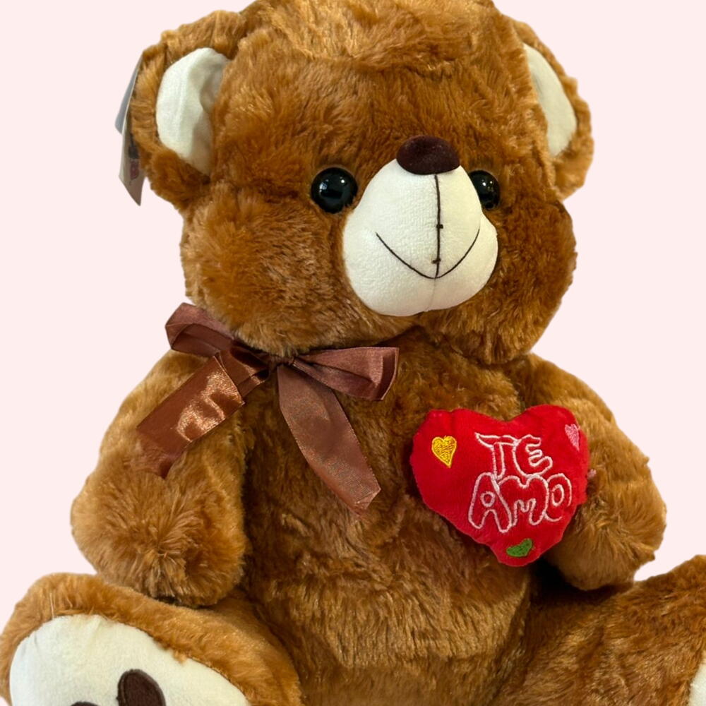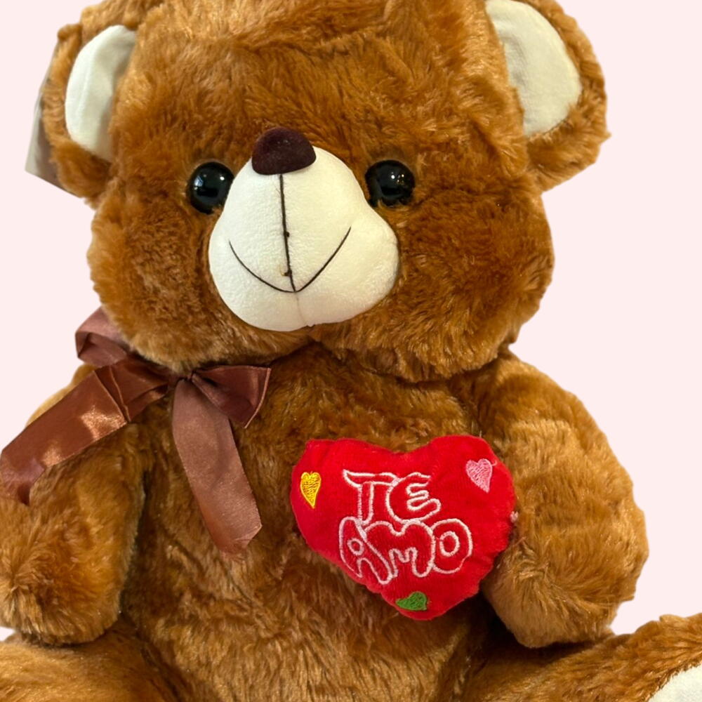 Plush Teddy Bear with “Te Amo” Heart – Perfect Gift for Loved Ones! 🌟 This adorable soft brown teddy bear is the perfect way to show your love. Made from ultra-plush, high-quality materials, it’s irresistibly cuddly and sweet. The teddy holds a red heart embroidered with “Te Amo”, making it an ideal romantic gift for Valentine’s Day, anniversaries, birthdays, or just to brighten someone’s day. 🎀 Features: Super soft, fluffy texture Cute embroidered heart with Te Amo message Shiny ribbon bow for an elegant touch Large size, perfect for hugging Safe for all ages 🎁 Perfect for: Love confessions, surprises, romantic gestures, and meaningful gifts.
