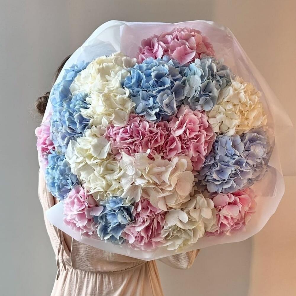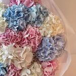 ribbon white - 2 pcs rabink white - 5 pcs hidrangea white - 7 pcs hidrangea bink - 7 pcs hidrangea blu - 7 pcs