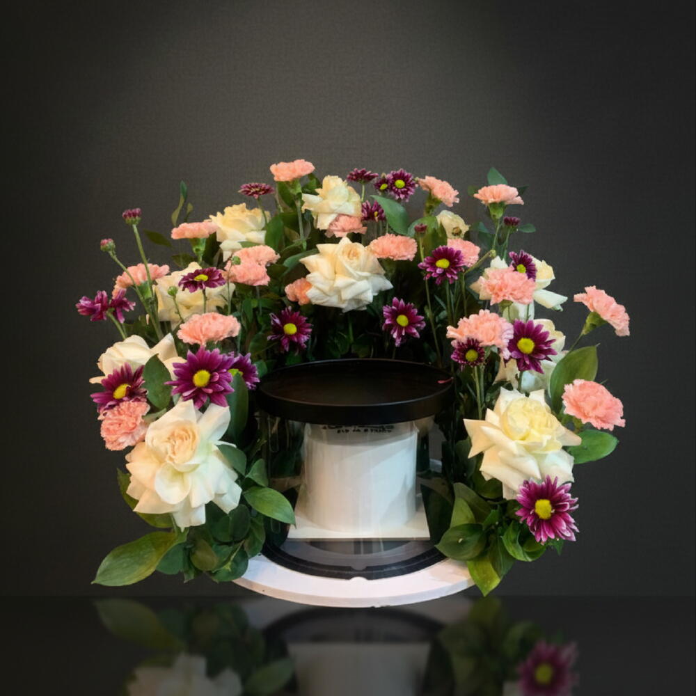carnation - 13 pcs crysanthemum - 5 pcs roses - 10 pcs mini oreo cake - 1 pcs